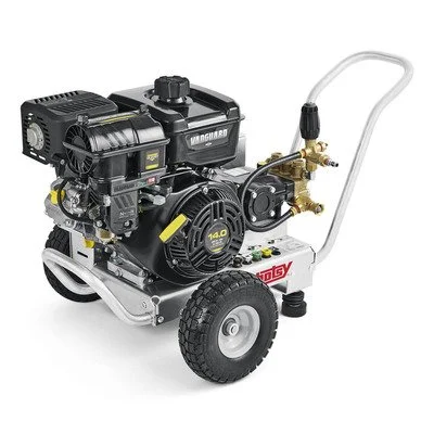 This model is one of the most rugged cold water pressure washers on the market with its all-steel frame and cage. The Hotsy belt-drive, triplex pump is powered by a Briggs Vanguard engine, delivering cleaning power of 4000 PSI @ 4.0 GPM. Equipped with flat free tires and a 50’ hose. ETL safety certified.